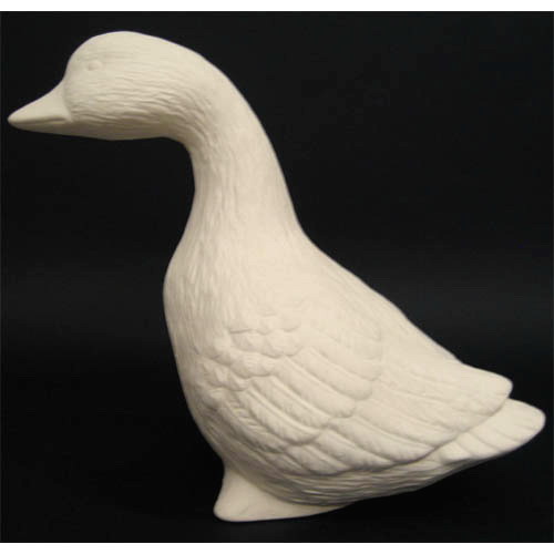 Réf. 09-081 caneton debout, figurine, L 23 x l 12 x h 21,5 ; biscuit de faïence fine (céramique brute)