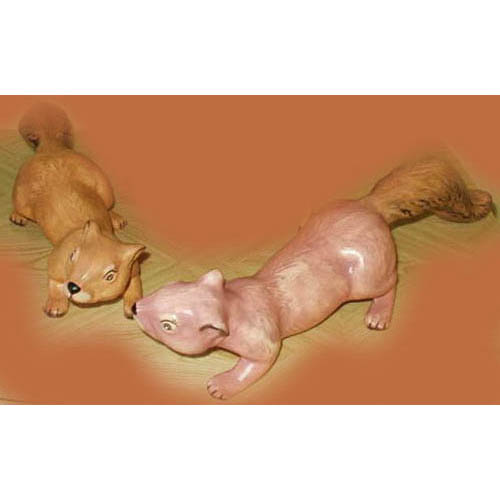 Réf. 11-079a2 et réf. 11-079a3 écureuil marchant, figurines peintes, L 40 x l 10,5 x h 9,5