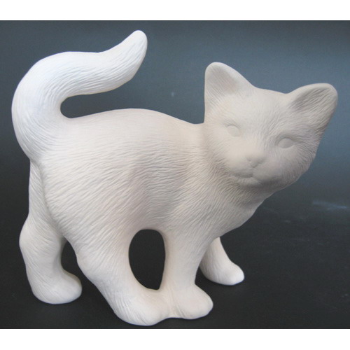 Réf. 06-018 chat pour étagère, figurine, L 18 x l 10 x h 13,5 ; biscuit de faïence fine (céramique brute)