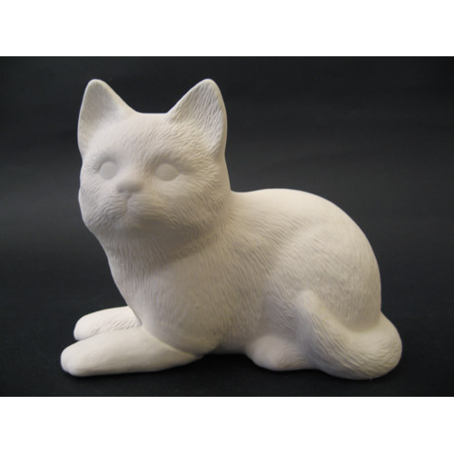 Réf. 06-017 chat couché, figurine, L 16 x l 9 x h 13 ; biscuit de faïence fine (céramique brute)