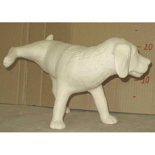 Réf. 07-047 chien faisant pipi, figurine, L 30 x h 25 ; biscuit de faïence fine (céramique brute)