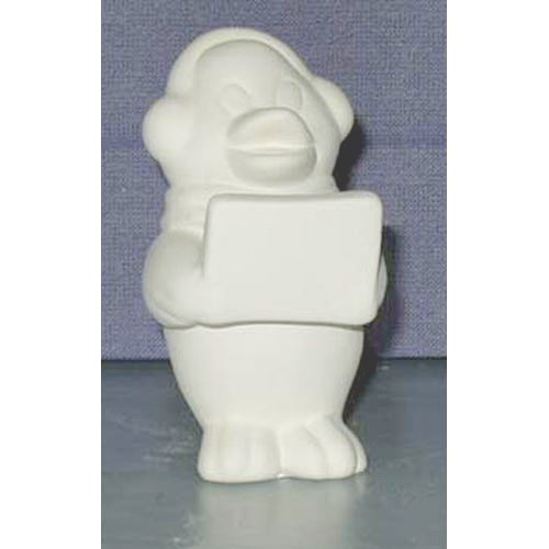 Réf. 11-010-1 manchot habillé, figurine, h 12 ; biscuit de faïence fine (céramique brute à peindre ou à émailler)