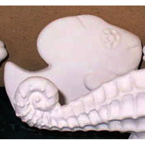 Réf. 11-132 dauphin, figurine dos plat, L 16 x l 10 x h 1,3 ; biscuit de faïence fine (céramique brute à peindre ou à émailler)