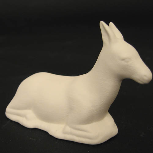 Réf. 08-014-2 âne couché, figurine, L 10 x l 4 x h 6,6 ; biscuit de faïence fine (céramique brute à peindre ou à émailler)