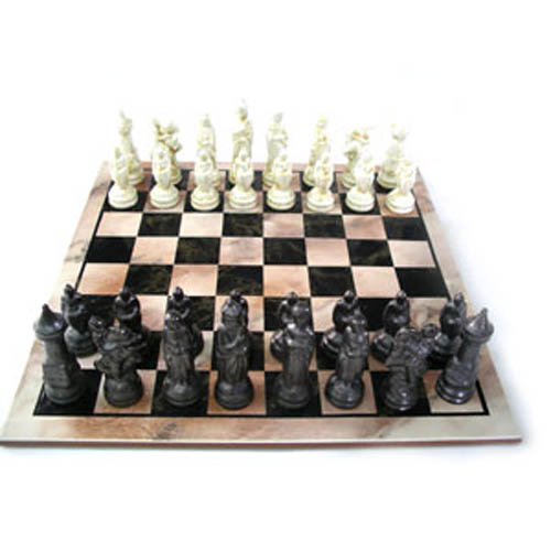 Réf. 13-075-8p jeu d'échecs, 32 figurines peintes et émaillées correspondantes au jeu plus échiquier (cf. la galerie des artistes partenaires : Jordan Grigorov)