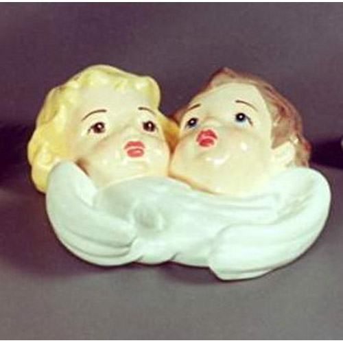 Réf. 14-041a deux têtes d'ange, figurine peinte, L 11,5 x l 5 x h 11