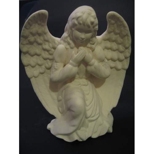 Réf. 14-068 ange à genoux, figurine, L 17 x l 9,5 x h 19 ; biscuit de faïence fine (céramique brute à peindre ou à émailler)