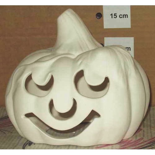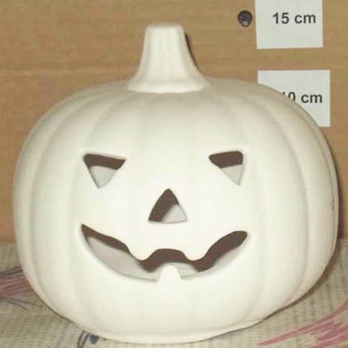 Réf. 12-022 citrouille, figurine / photophore, h 15 ; biscuit de faïence fine (céramique brute à peindre ou à émailler)