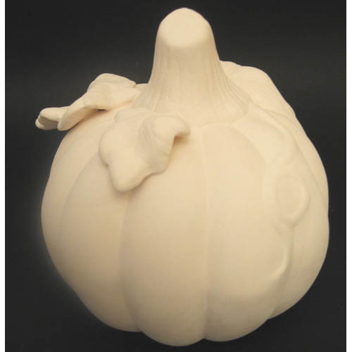 Réf. 12-021 potiron, figurine / photophore, diam. 29 x h 22 ; biscuit de faïence fine (céramique brute à peindre ou à émailler)