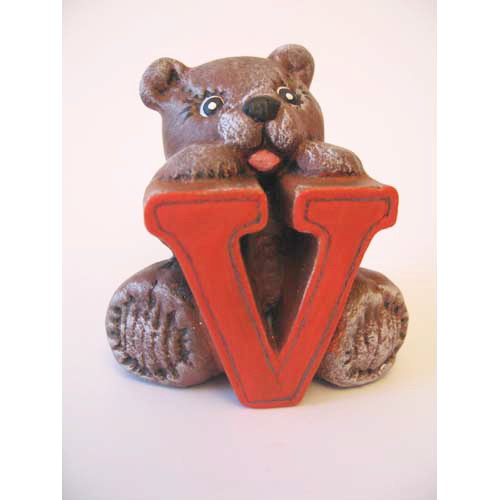Réf. 04-006-17 ourson en peluche lettre « V », figurine, biscuit en faïence fine (céramique brute), L 6,5 x l 5 x h 7
