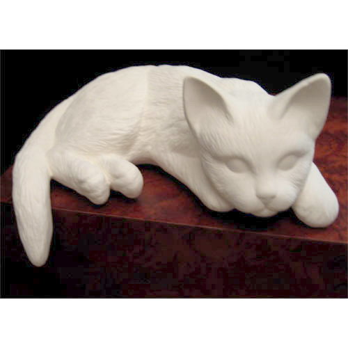 Réf. 06-001 chat lové sur lui même, figurine, L 24 x l 18 x h 11 ; biscuit de faïence fine (céramique brute à peindre ou à émailler)