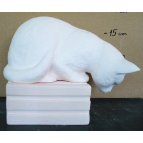 Réf. 06-057 chat pour étagère, figurine, L 28 x l 13 x h 20 ; biscuit de faïence fine (céramique brute)