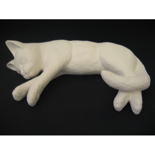 Réf. 06-052 chat dormant, figurine, L 19 x l 17 x h 11 ; biscuit de faïence fine (céramique brute)