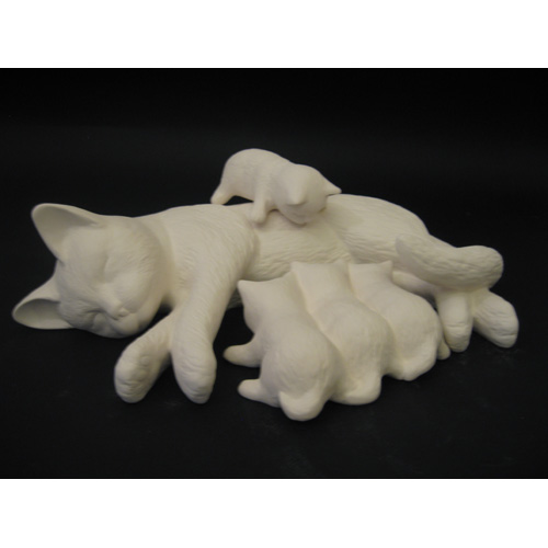 Réf. 06-067-2 chatte avec 4 chatons, ensemble de 3 figurines (le chaton, L 11,5 x l 7 x h 4)