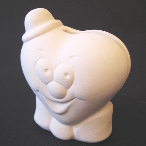 Réf. N°168-2 coeur garçon, porte-photo / porte-nom, L 5,5 x l 3,5 x h 6,5 ; biscuit de faïence fine (céramique brute à peindre ou à émailler)