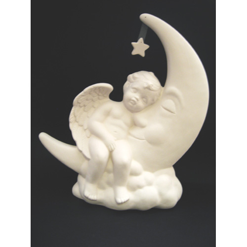 Réf. 14-108-1 ange sur la Lune (étoile collée), figurine, L 24 x l 11 x h 29