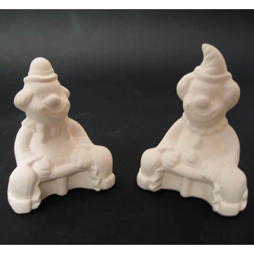 Réf. N°063-1 clown, figurine, L 11,5 x l 7,5 x h 11,5 ; biscuit de faïence fine (céramique brute à peindre ou à émailler)