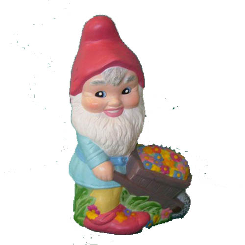 Réf. 02-022a nain avec brouette, figurine peinte, L 23 x l 17 x h 40