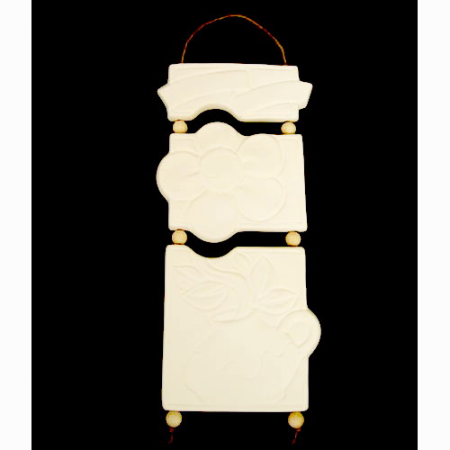 Réf. N°206 fleurs, composition murale de 3 parties liées par des fils, L 9 x l 1 x h 19 ; biscuit de faïence fine (céramique brute à peindre ou à émailler)