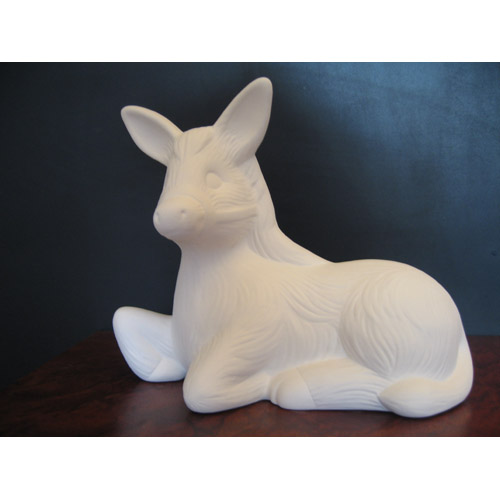 Réf. 01-082 âne, figurine, L 20 x l 8,5 x h 17 ; bbiscuit de faïence fine (céramique brute à peindre ou à émailler)
