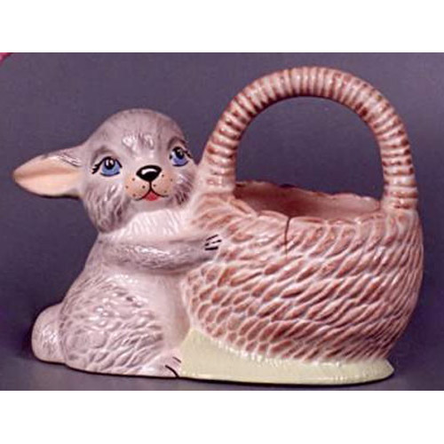 Réf. 05-007b-3 lapin avec corbeille, bonbonnière / porte-crayon / cache-pot peint, L 19 x l 11 x h 14,5