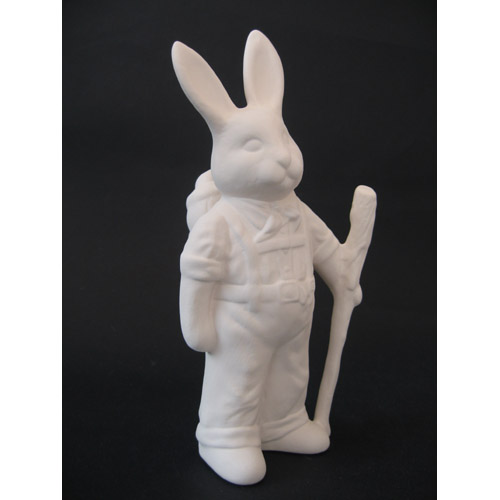 Réf. 05-011 lapin promeneur, figurine, L 10 x l 9 x h 22 ; biscuit de faïence fine (céramique brute à peindre ou à émailler)
