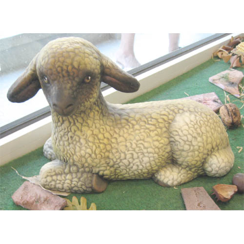 Réf. 08-049a agneau couché, figurine peinte, L 39 x h 22