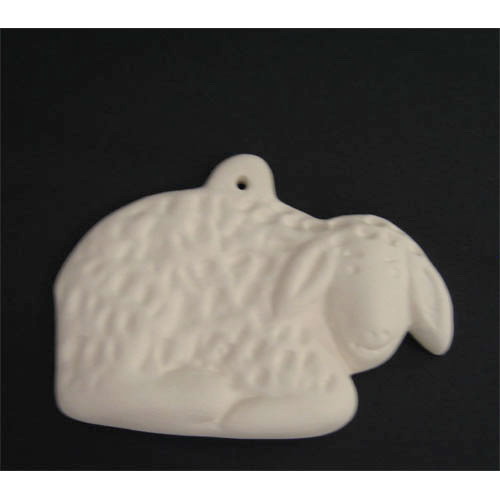 Réf. 08-004 brebis, figurine à suspendre, h 5 ; biscuit de faïence fine (céramique brute à peindre ou à émailler)