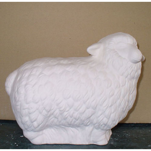 Réf. 08-001 agneau debout, figurine , L 39 x h 32 ; biscuit de faïence fine (céramique brute à peindre ou à émailler)