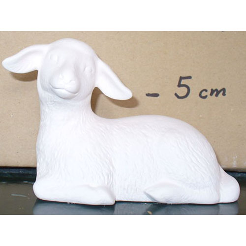 Réf. 09-050-3 agneau, figurine, L 4 x l 1,6 x h 3 ; biscuit de faïence fine (céramique brute à peindre ou à émailler)