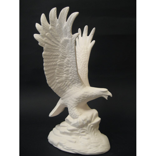 Réf. 10-077 aigle en vol, figurine, L 19 x l 16 x h 30 ; biscuit de faïence fine (céramique brute à peindre ou à émailler)