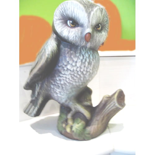 Réf. 10-003b2 hibou, figurine peinte, L 7,5 x l 8,5 x h 15