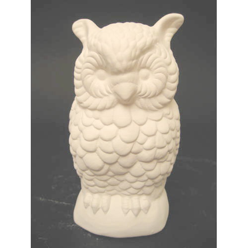 Réf. 10-001 hibou, figurine, L 30 x l 26 x h 41 ; biscuit de faïence fine (céramique brute à peindre ou à émailler)