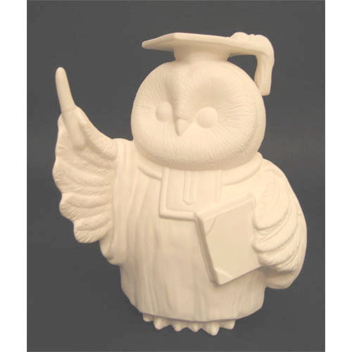 Réf. 10-007 chouette professeur, figurine, L 14 x l 11,5 x h 18,4 ; biscuit de faïence fine (céramique brute à peindre ou à émailler)