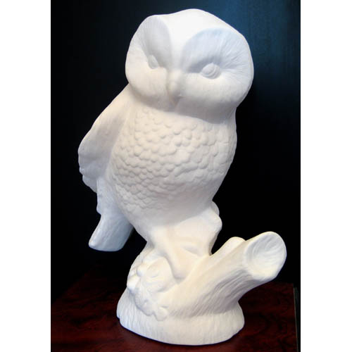 Réf. 10-002 chouette, figurine, L 27,5 x l 18,5 x h 35 ; biscuit de faïence fine (céramique brute à peindre ou à émailler)