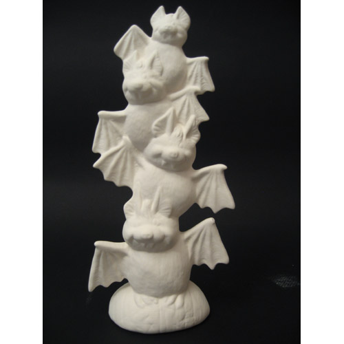 Réf. 10-044 colonne de chauve-souris, figurine, L 10 x l 6 x h 22 ; biscuit de faïence fine (céramique brute à peindre ou à émailler)
