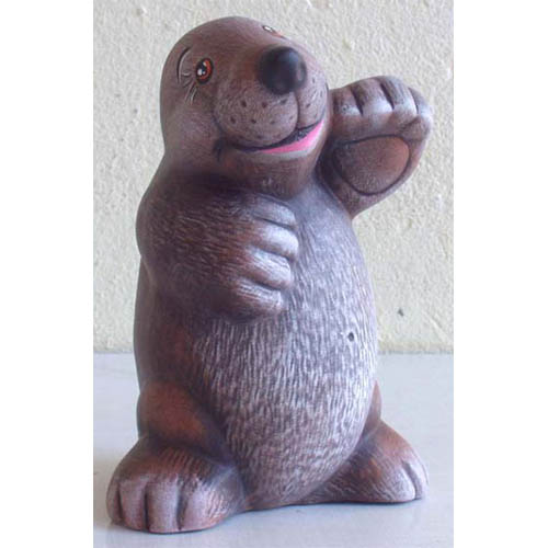 Réf. 11-035-2bv taupe patte levée, figurine peinte, h 17 (cf. la galerie des artistes partenaires : Anne-Marie Lefaivre).
