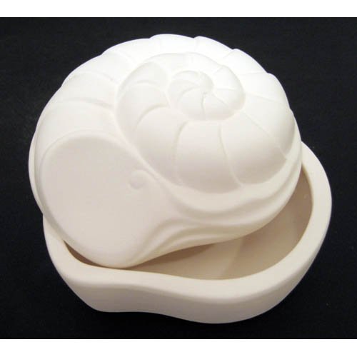 Réf. N°096 escargot, boîte, L 9,5 x l 8 x h 5 ; biscuit de faïence fine (céramique brute à peindre ou à émailler)
