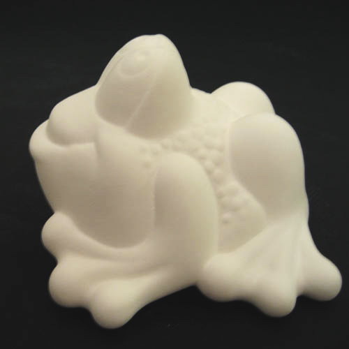Réf. N°072 grenouille, figurine, L 13 x l 11 x h 8 ; biscuit de faïence fine (céramique brute à peindre ou à émailler)