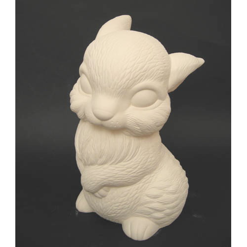 Réf. 05-073 grand lièvre sur les pattes de derrière, figurine, L 19 x l 18,5 x h 30 ; biscuit de faïence fine (céramique brute à peindre ou à émailler)