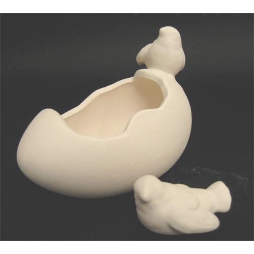 Réf. 09-057 oeuf et oiseaux, groupe de deux figurines / bonbonnière, L 13,5 x l 7 x h 10,5 ; L 5 x l 3,5 x h 3,3 (2ème option) ; biscuits de faïence fine (céramique brute à peindre ou à émailler)