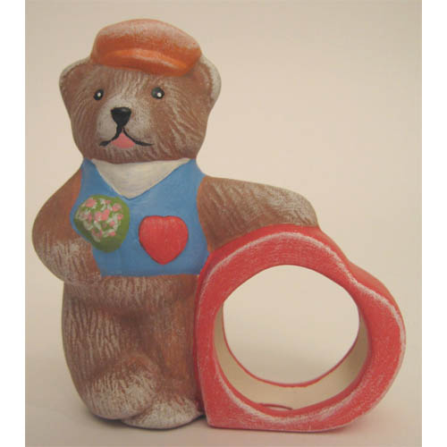Réf. 04-009-2b ourson en peluche avec coeur, rond de serviette peint, L 6,5 x l 3 x h 7,5