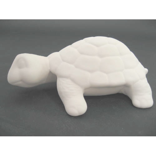 Réf. N°032 tortue, figurine, L 17 x l 12 x h 6 ; biscuit de faïence fine (céramique brute à peindre ou à émailler)