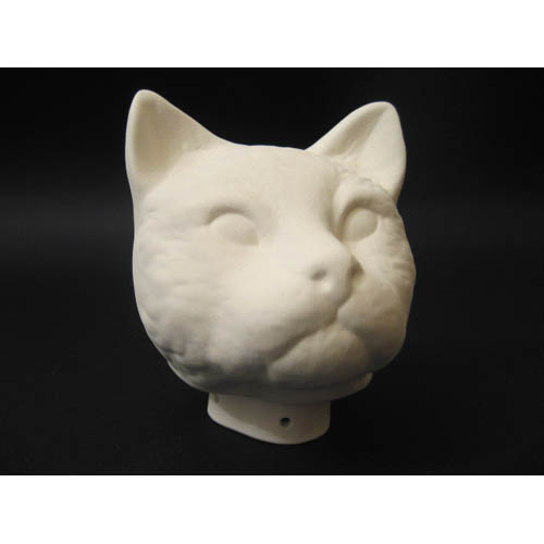 Réf. 06-010-1 tête de chat, figurine pour marionnette (avec ou sans trous sur le cou), L 9,5 x l 8 x h 10 ; biscuit de faïence fine (céramique brute)