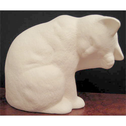 Réf. 06-012 chat qui se lave, figurine, L 16 x l 9 x h 13 ; biscuit de faïence fine (céramique brute)