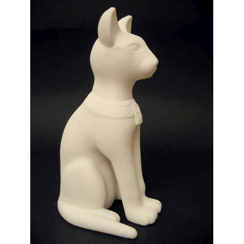 Réf. 06-020 Bastet - déesse d'Egypte, figurine (profil), L 15 x l 11 x h 28 ; biscuit de faïence fine (céramique brute)