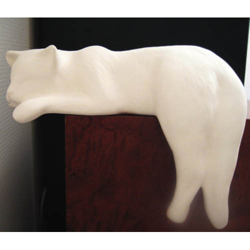 Réf. 06-052 chat dormant, figurine, L 19 x l 17 x h 11 ; biscuit de faïence fine (céramique brute)
