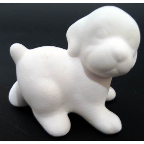 Réf. 07-007-2 chiot debout, figurine, L 7,5 x l 5 x h 6 ; biscuit de faïence fine (céramique brute)