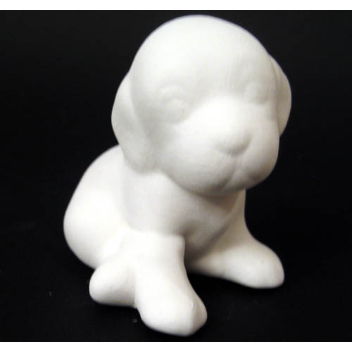 Réf. 07-007-3 chiot assis, figurine, L 6,5 x l 5 x h 6 ; biscuit de faïence fine (céramique brute)