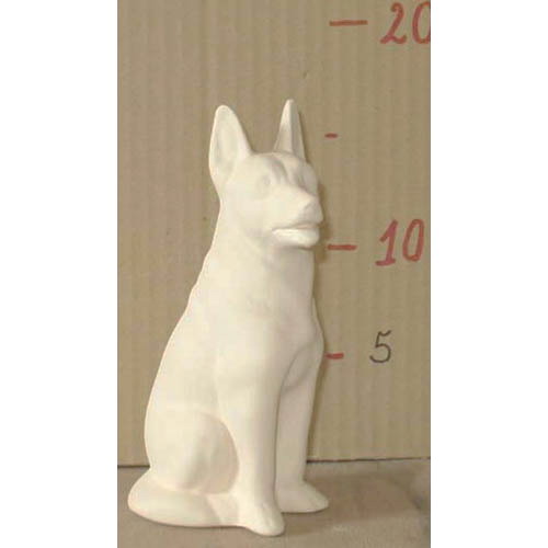 Réf. 07-014 berger allemand debout, figurine, h 17 ; biscuit de faïence fine (céramique brute)